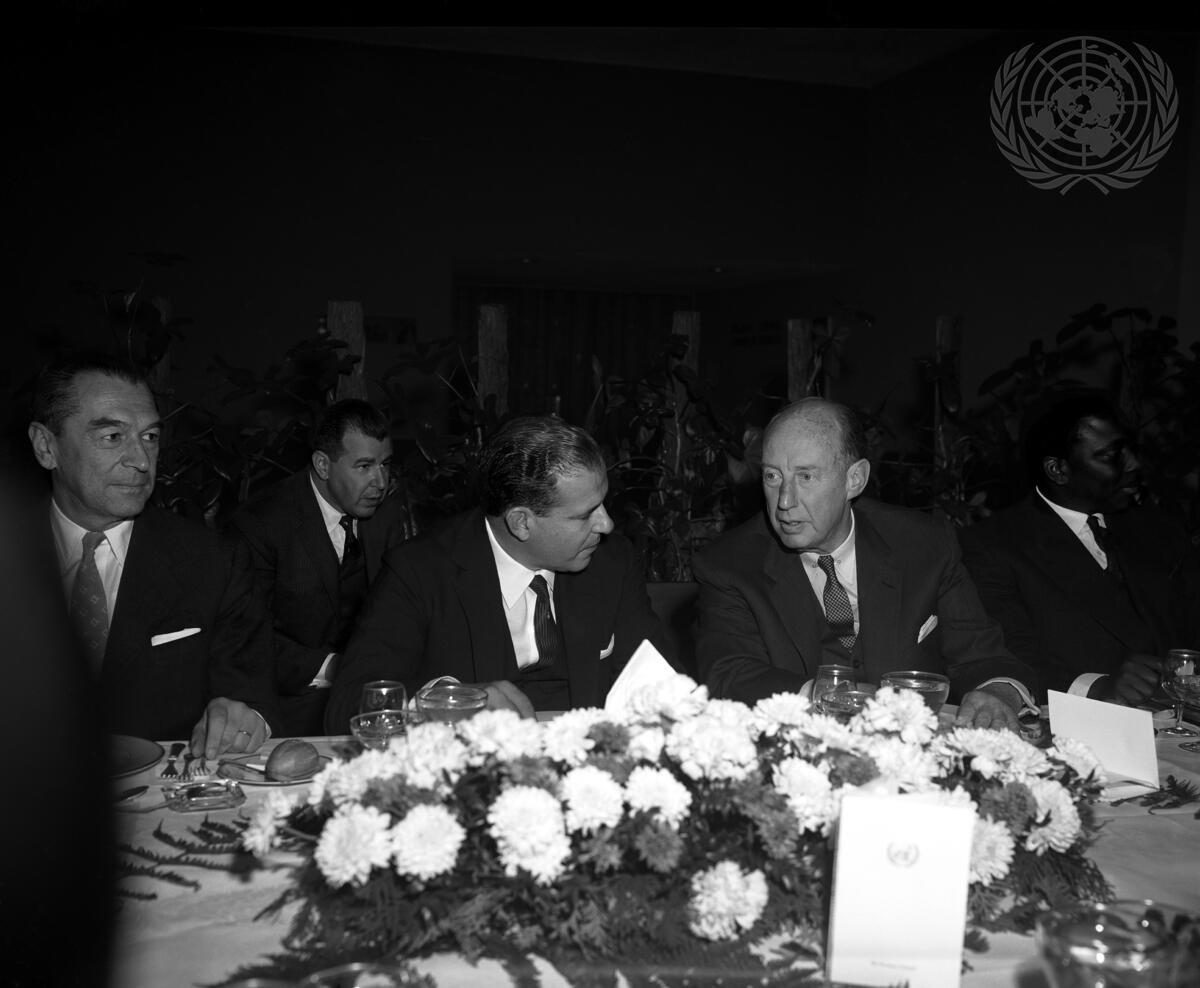 Joao Goulart, President of Brazil, today paid an official visit to UN Headquarters, where he was the guest of honour at a luncheon offered by Acting U.N. Secretary-General U Thant. After the luncheon, he was accompanied by his host on a short tour of the Headquarters buildings.