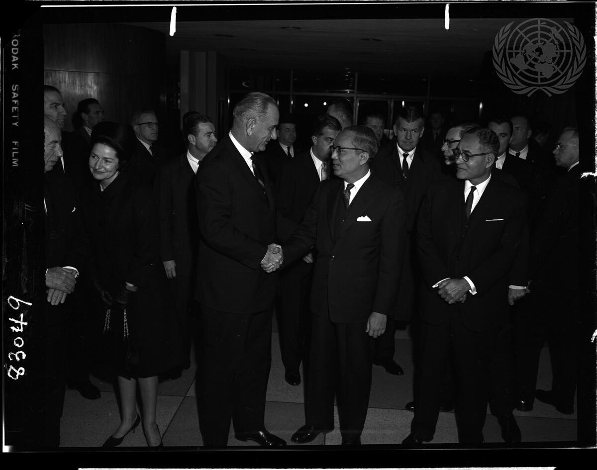The President of the United States, Lyndon B. Johnson, paid a visit to United Nations Headquarters today and addressed the delegates to the eighteenth session of the General Assembly.