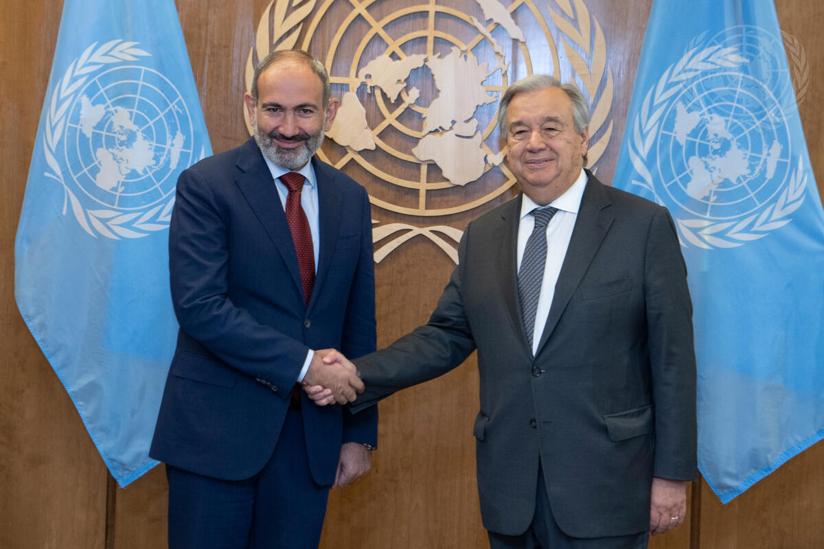 Secretary-General António Guterres (right) meets with Nikol Pashinyan, Prime Minister of the Republic of Armenia.