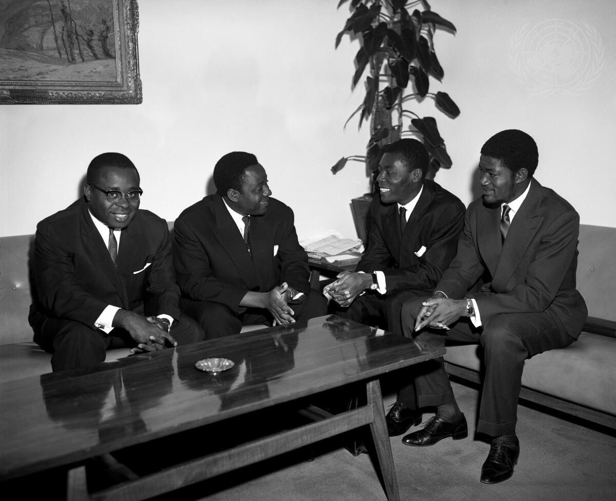 Seen here (l. to r.) are: Mr. A. Ngando- Black, Director of the American, Asian and United Nations Division, and of International Organizations; Ambassador Benoit Bindzi, Mr. Eugene Njo-Lea, Counselor of Foreign Affairs and Head of Studies Division; and Mr. Francois Ebakisse.