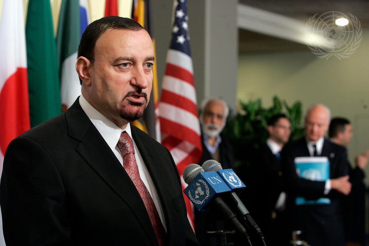 Hamid Al-Bayati, Permanent Representative of Iraq to the United Nations, briefs the media following a Security Council meeting on the situation in his country.