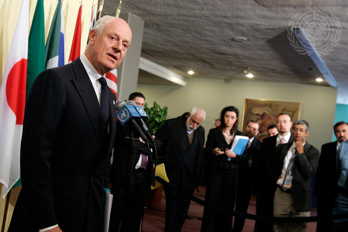 Staffan de Mistura, Special Representative of the Secretary-General and Head of the United Nations Assistance Mission in Iraq (UNAMI), briefs the media following a Security Council meeting on the situation in Iraq.