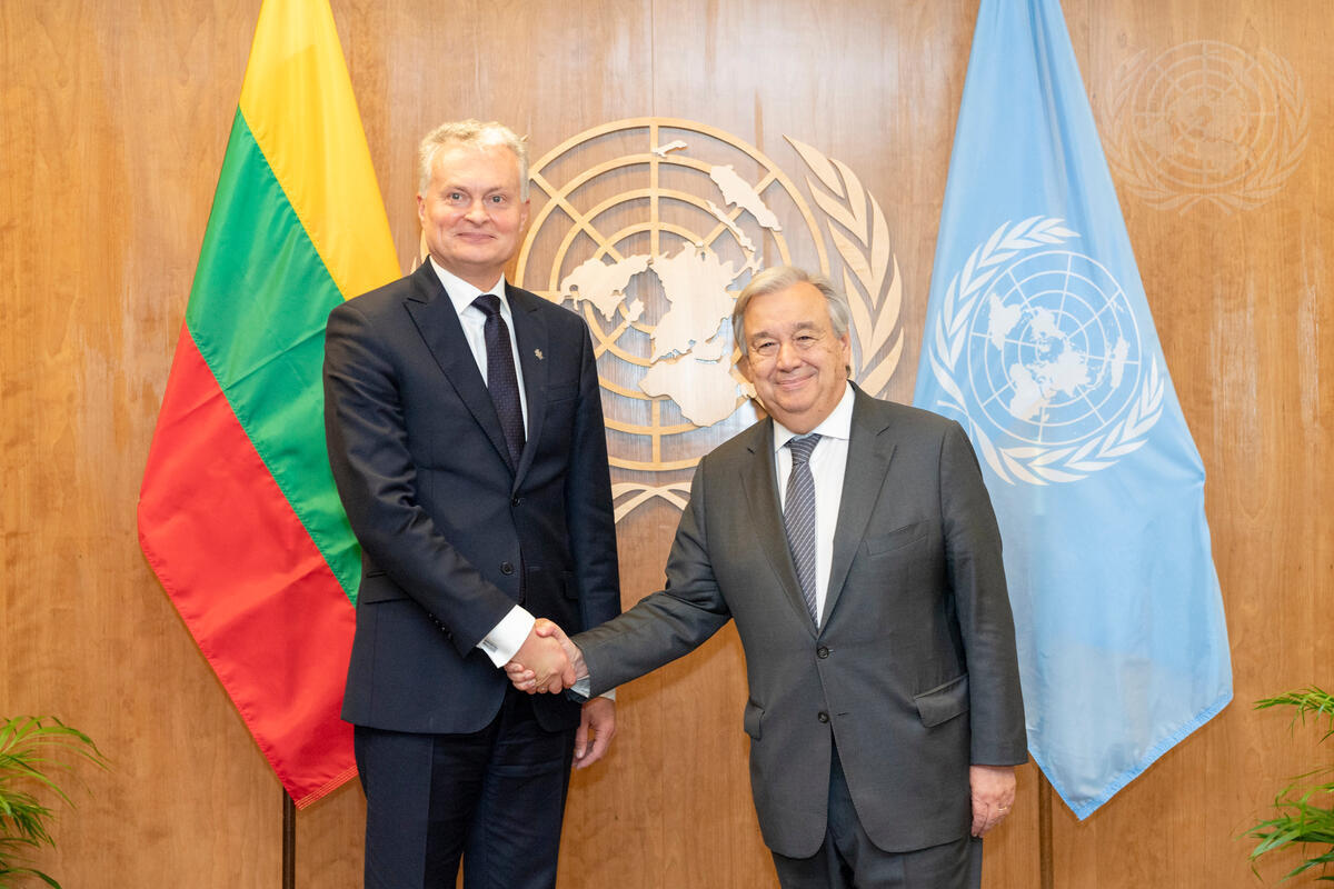 Secretary-General António Guterres (right) meets with Gitanas Nauseda, President of the Republic of Lithuania.