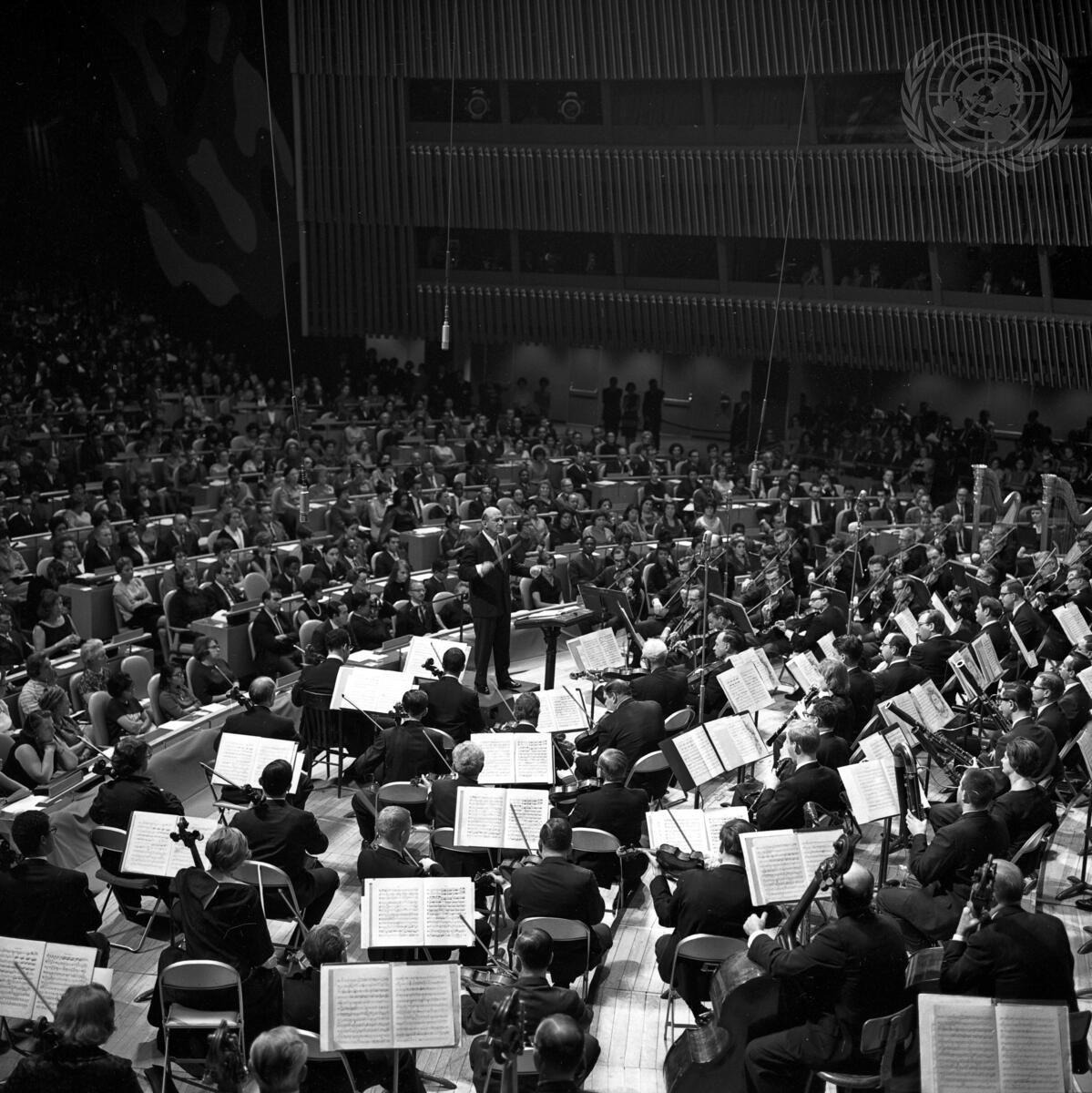 The Pittsburgh Symphony Orchestra under the direction of William Steinberg took part in a United Nations Day Concert which was held in the General Assembly Hall today. The soloist was Mirella Freni, Italian soprano. An address was given by UN Secretary-General, U Thant.