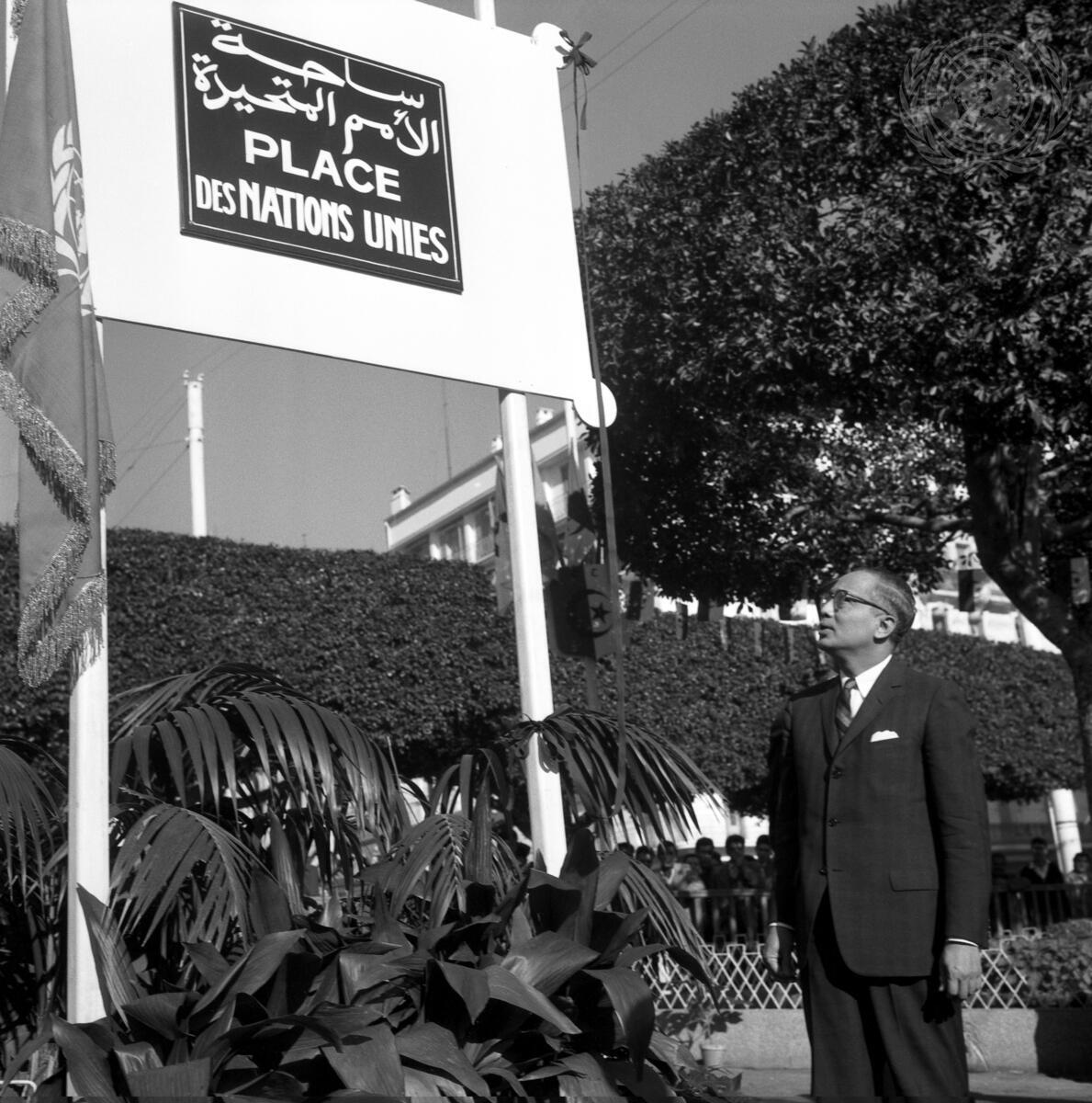 Secretary-General U Thant is seen here during the inauguration of the United Nations square, located in the center of Algiers
