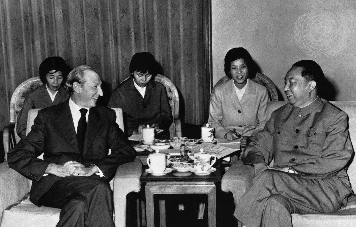 Secretary-General Kurt Waldheim meeting with Hua Kuo-feng, Chairman of the Central Committee of the Communist Party of China and Premier of the State Council, on 6 August.