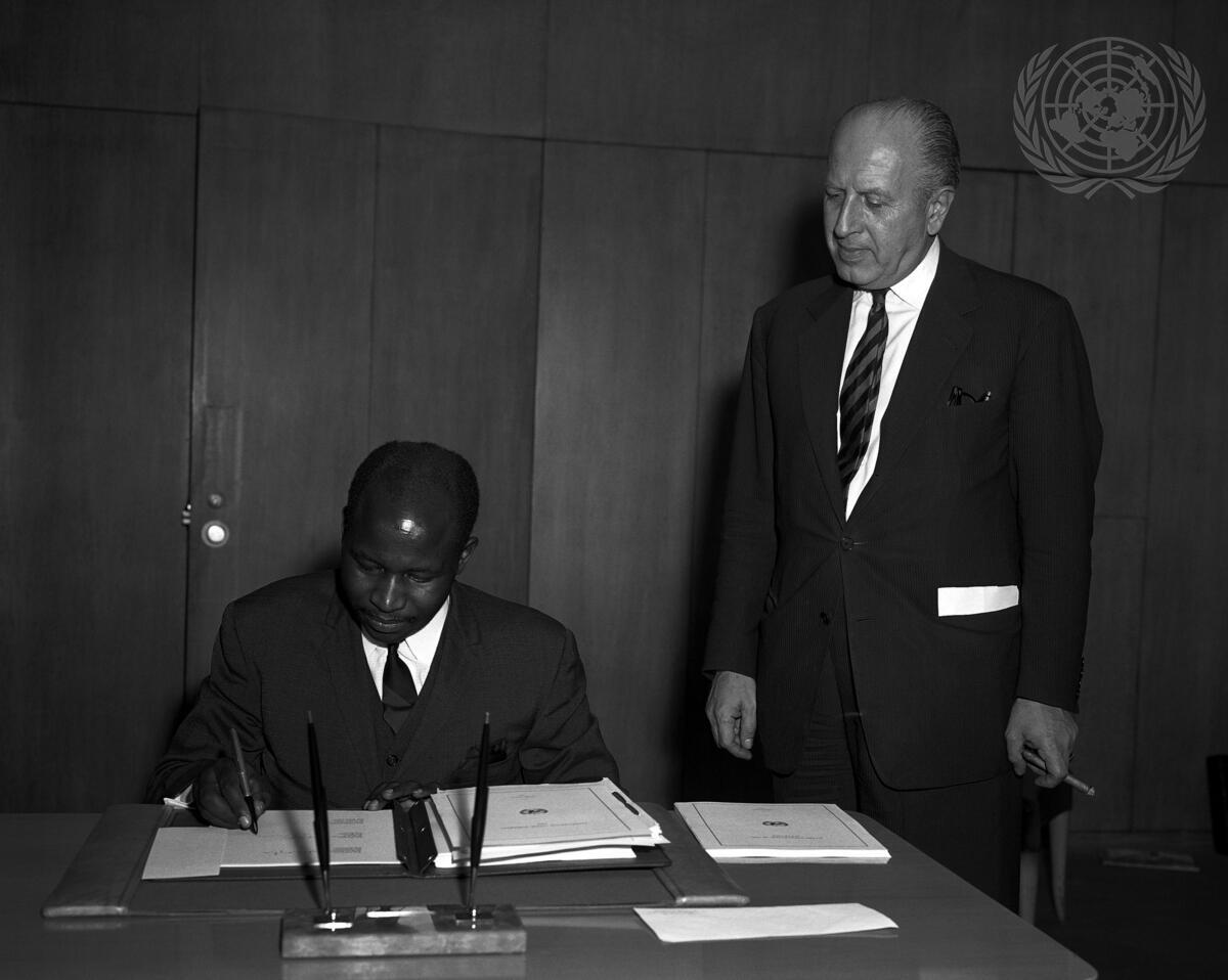 Seen here as he signed the International Coffee Agreement, 1968, today on behalf of his Government, is Celestin Kabanda, Permanent Representative of Rwanda to the United Nations.