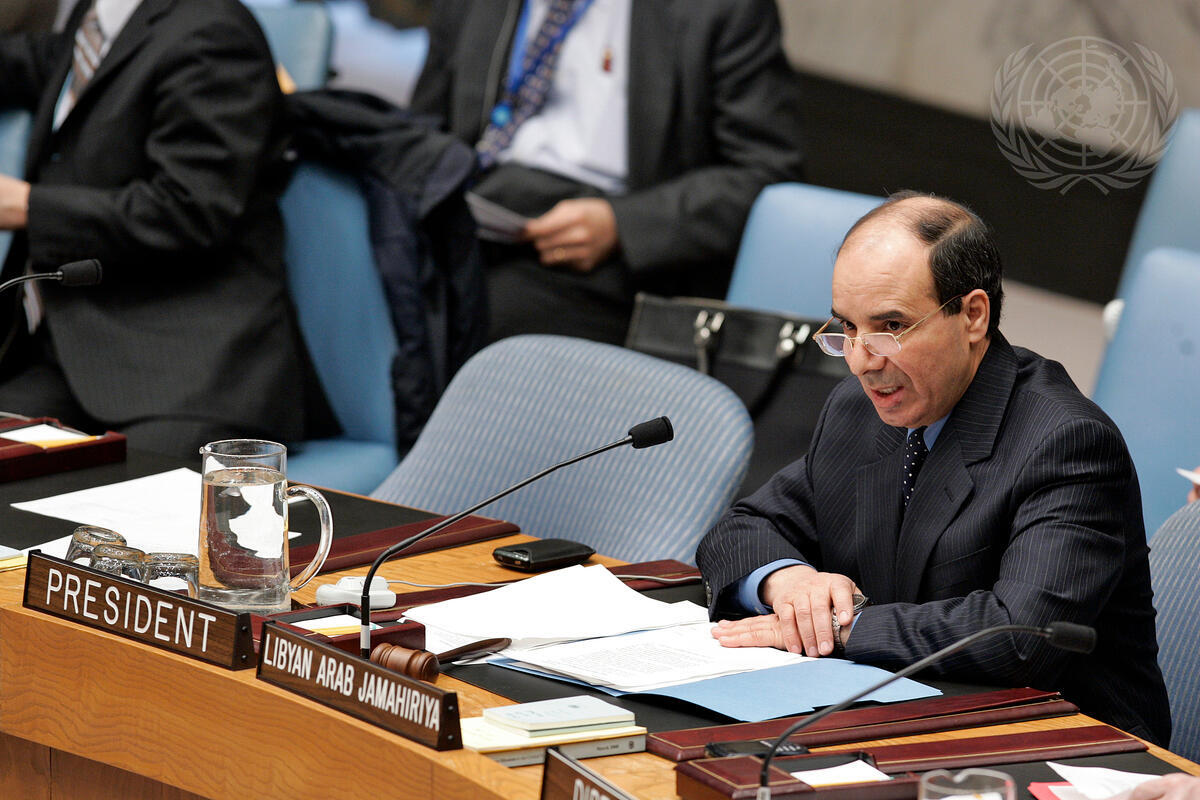 Ibrahim Dabbashi, Chargé d'affaires of the Permanent Mission of the Socialist People's Libyan Arab Jamahiriya to the United Nations, and President of the Security Council for March, addresses a meeting on the programme of work of the Council for the month.