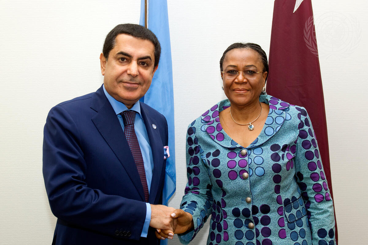 Nassir Abdulaziz Al-Nasser (left), President of the sixty-sixth session of the General Assembly, meets with U. Joy Ogwu, Permanent Representative of Nigeria to the UN and President of the Security Council for October.