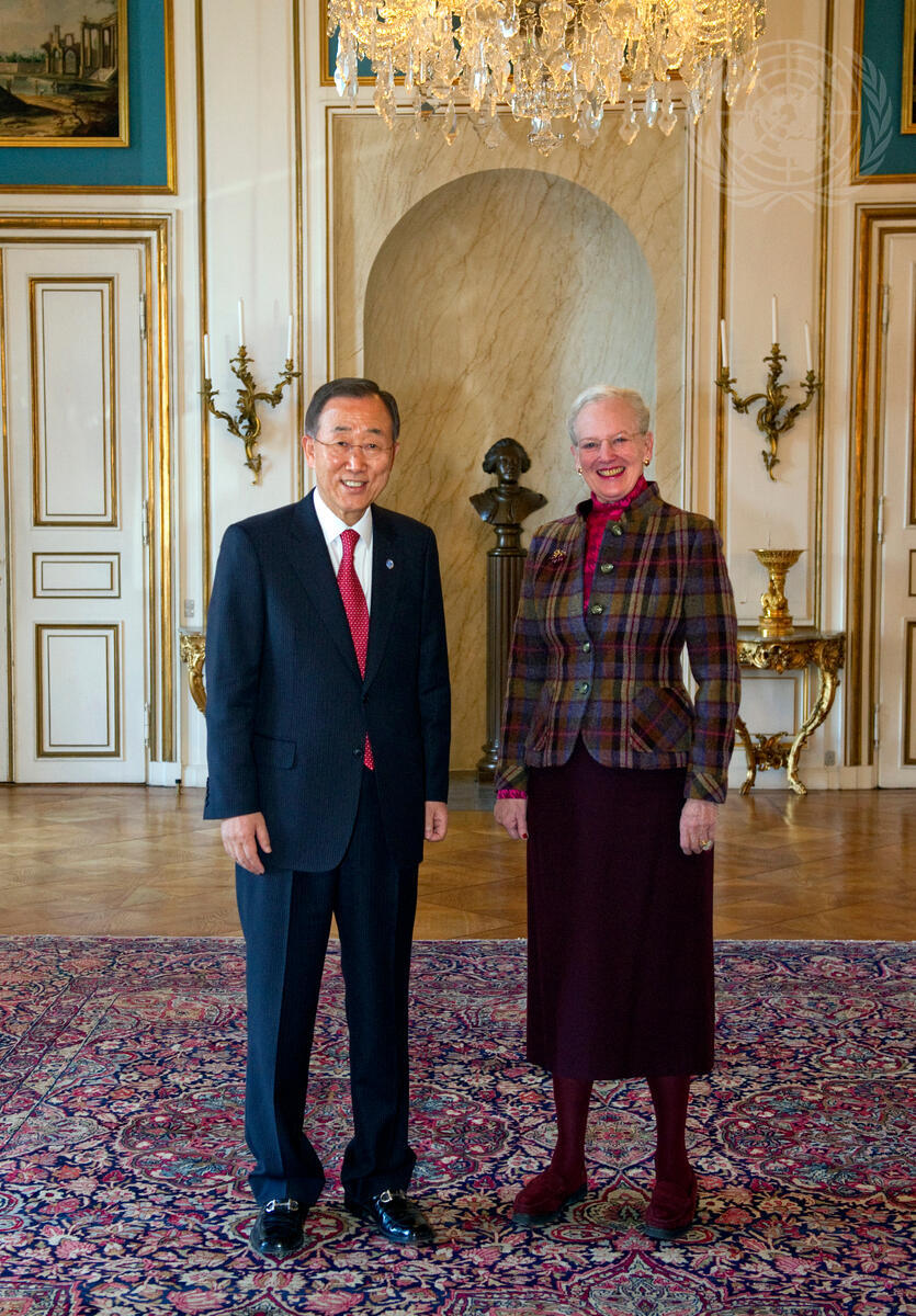 Secretary-General Ban Ki-moon (left) has an audience with Queen Margrethe II of Denmark, at the royal palace in Copenhagen, Denmark.