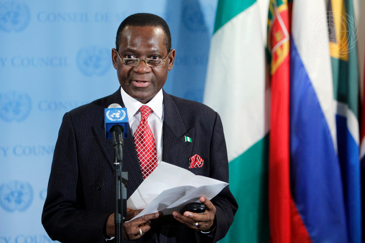 Olugbenga Ashiru, Minister for Foreign Affairs of Nigeria, briefs correspondents after presiding a meeting of the Security Council on security sector reform in Africa. Nigeria holds the rotating presidency of the Council for the month of October.