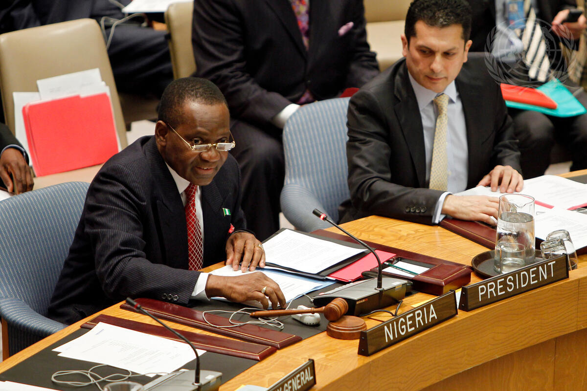 Olugbenga Ashiru (left), Minister for Foreign Affairs of Nigeria, presides a meeting of the Security Council on the prospects and challenges for security sector reform in Africa. Nigeria holds the Council's rotating presidency for the month of October.