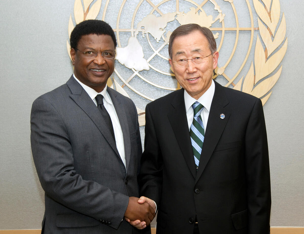 Aboubacar Ibrahim Abani (left), outgoing Permanent Representative of the Niger to the UN, pays a farewell call on Secretary-General Ban Ki-moon.
