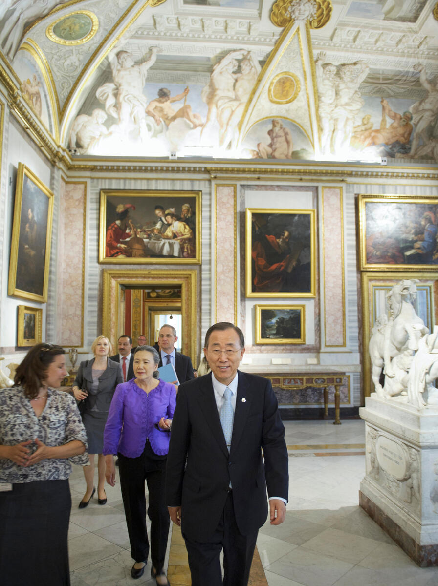 Secretary-General Ban Ki-moon and his wife Yoo Soon-taek visit Galleria Borghese.