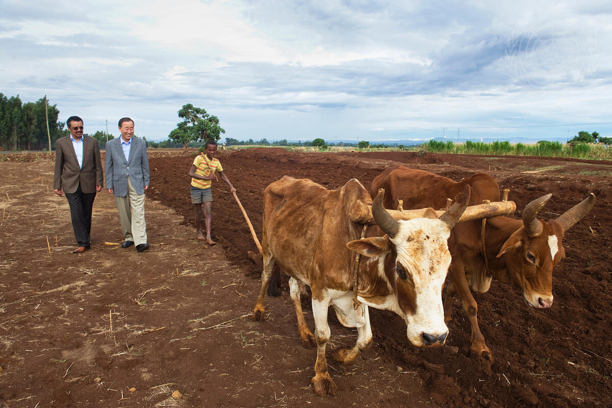 Caption Description Secretary-General Ban Ki-moon (right) and Tedros Ghebreyesus, Minister of Health of the Federal Democratic Republic of Ethiopia, watch a field being ploughed near the Ambo Mesk Health Post in Bahir Dar, Amhara Regional State, Ethiopia.