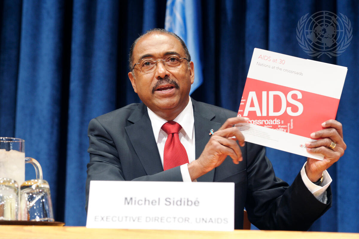 Michel Sidibé, Executive Director of the Joint United Nations Programme on HIV/AIDS (UNAIDS), speaks at the press conference launching the “UNAIDS – AIDS at 30: Progress of Nations Report”.