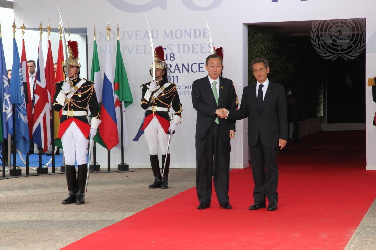 Secretary-General Ban Ki-moon (left) meets with Nicolas Sarkozy, President of France, at the 37th G8 Summit in Deauville, France.