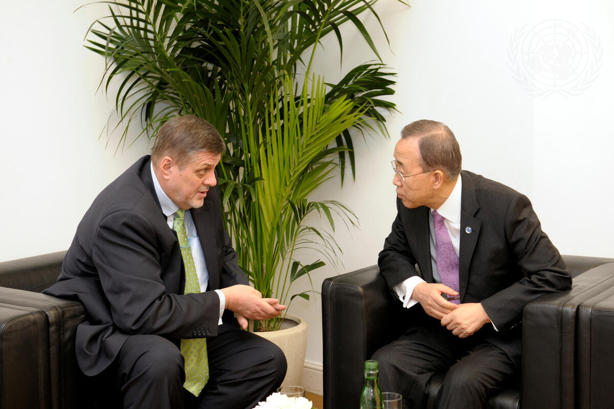 Secretary-General Ban Ki-moon (right) meets with Jan Kubis, his Special Representative for Afghanistan and Head of the UN Assistance Mission in Afghanistan (UNAMA), in Vienna, Austria.