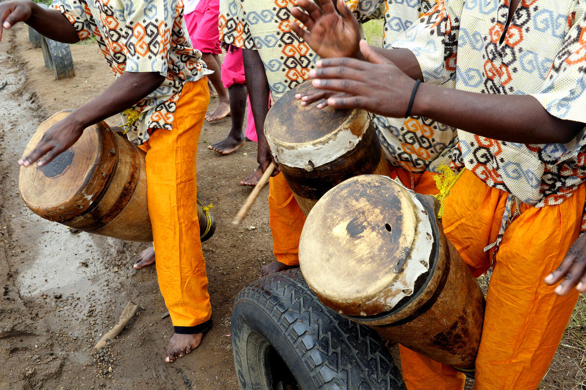 Drummers play outside the Fountain of Hope centre, visited today by Secretary-General Ban Ki-moon, in Lusaka, Zambia. The centre helps to rehabilitate thousands of children living on the streets of the Zambian capital.