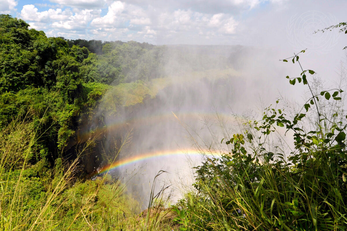 A double rainbow at spectacular Vicoria Falls in Livingstone, Zambia. The UN Educational, Scientific and Cultural Organization (UNESCO) World Heritage site, which straddles the border of Zambia and Zimbabwe, was visited today by Secretary-General Ban Ki-moon.