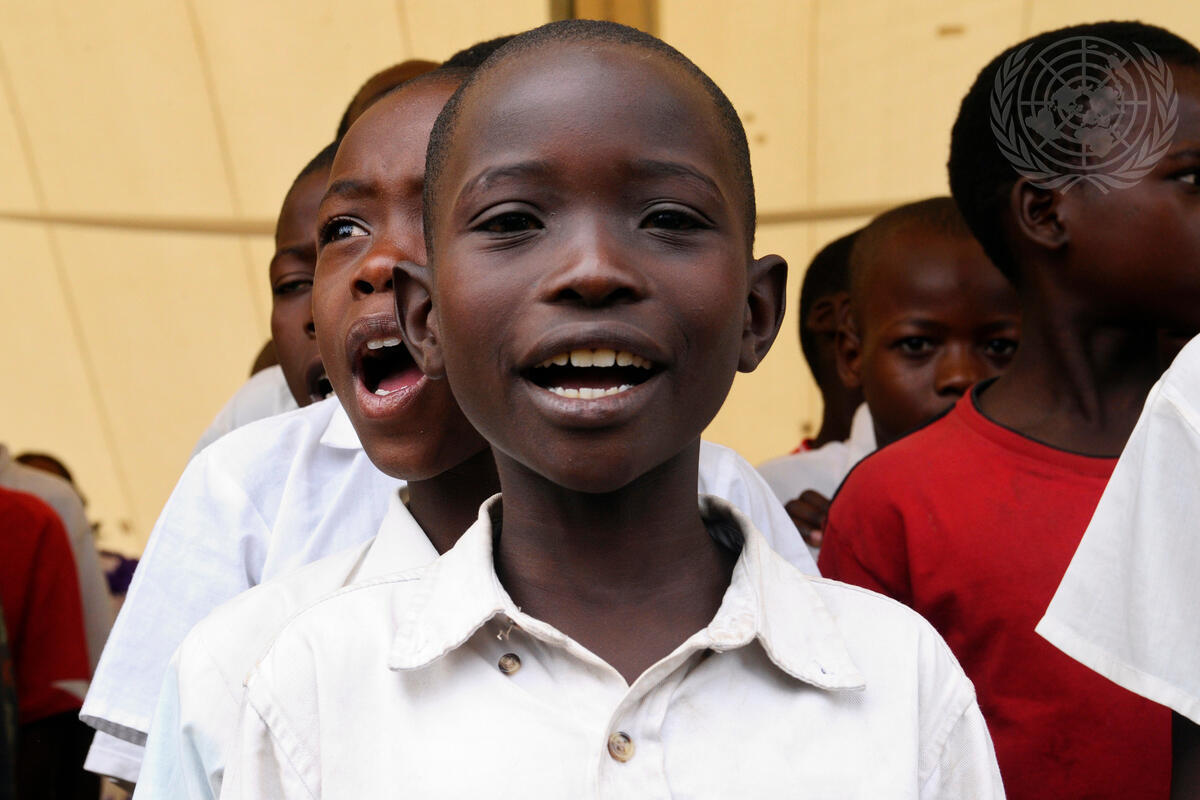 Children sing at the Fountain of Hope centre in Lusaka, Zambia, during a visit from Secretary-General Ban Ki-moon. The centre helps to rehabilitate thousands of children living on the streets of the Zambian capital.
