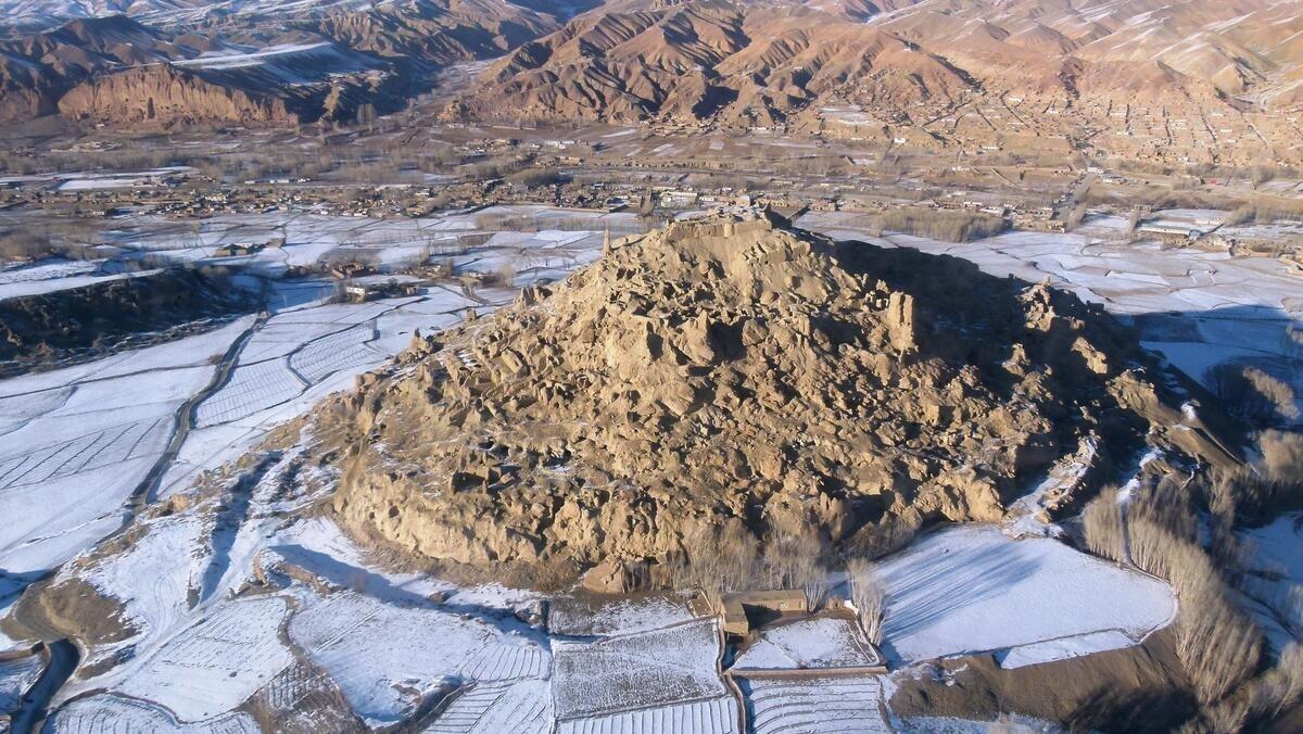 Snow surrounds the former royal citadel of Shar-e-Gholgola, or the ""City of Screams"", in Bamyan, Afghanistan.