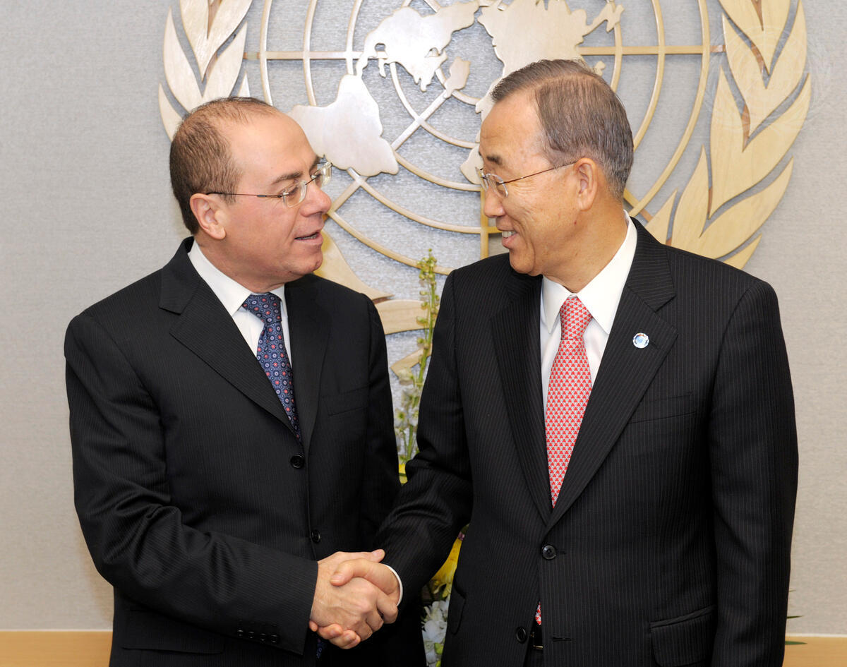 Secretary-General Ban Ki-moon (right) meets with Silvan Shalom, Vice Prime Minister of Israel and Minister for Regional Development.