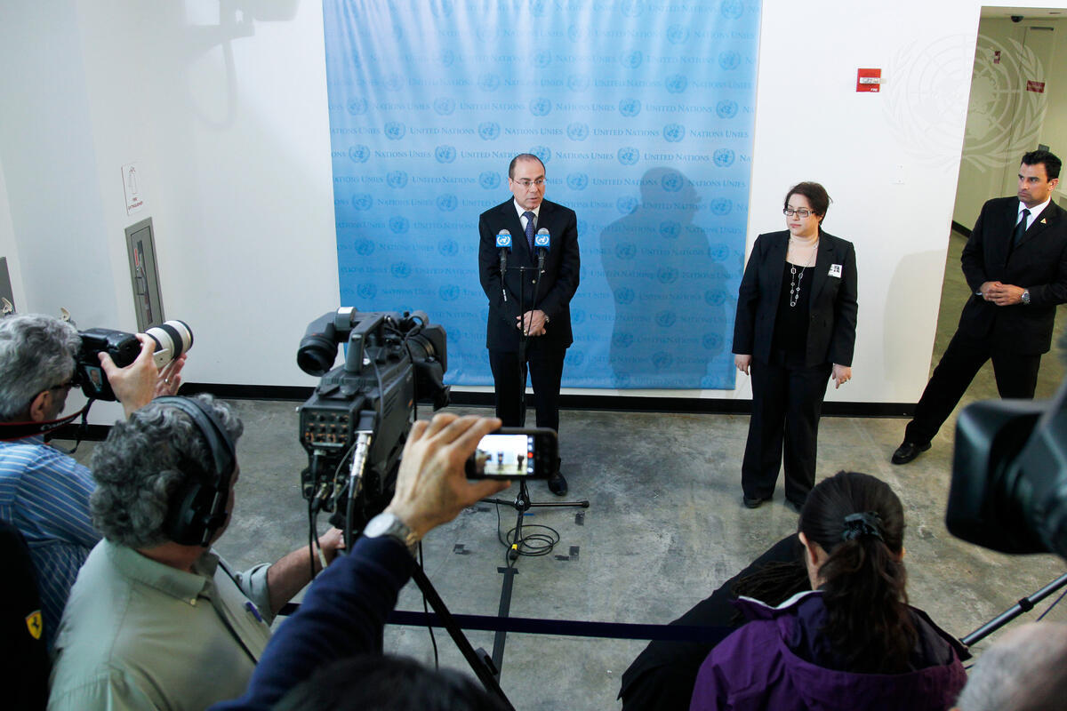 Following a meeting with UN Secretary-General Ban Ki-moon, Silvan Shalom, Vice Prime Minister and Minister for Regional Development of Israel, speaks to the press.