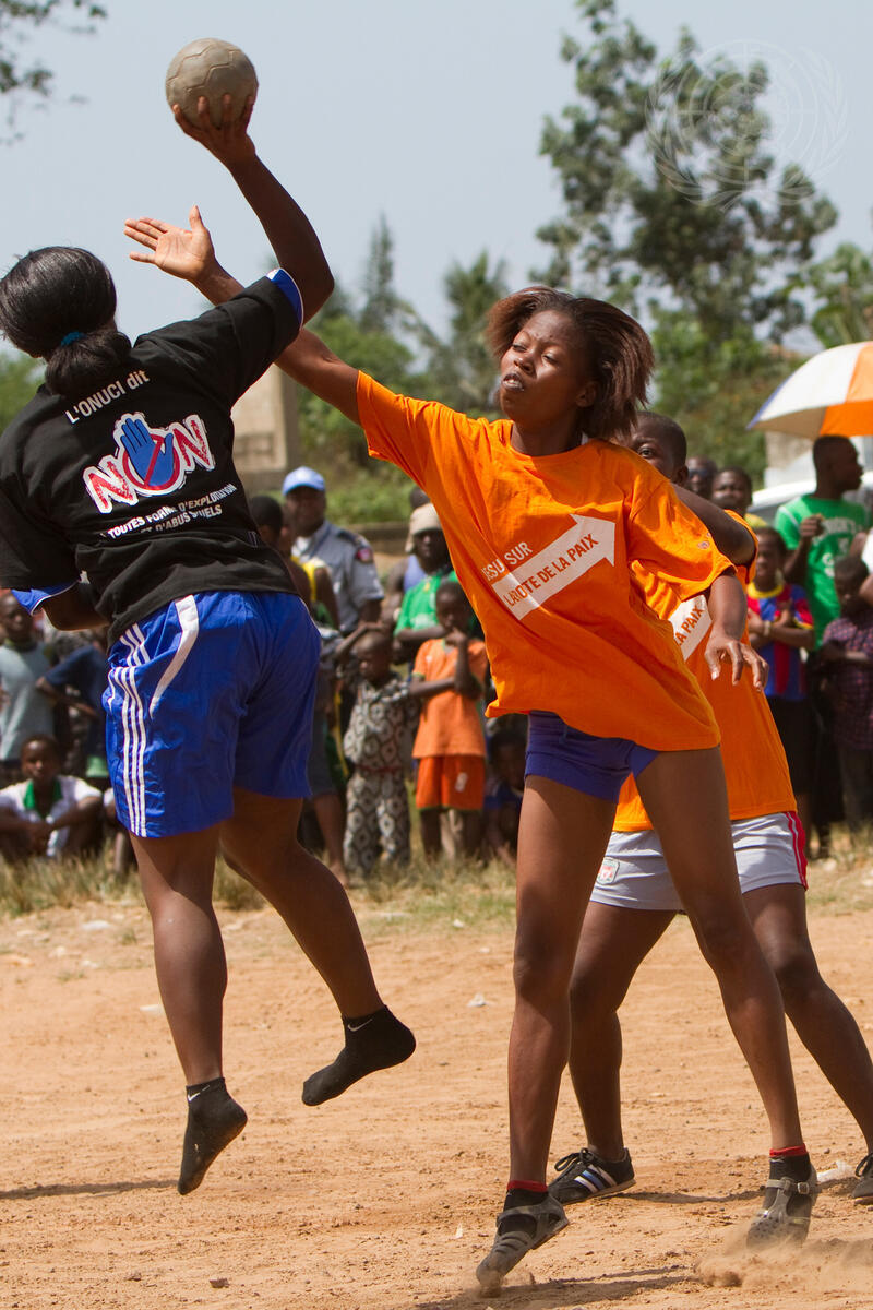 A group of girls take part in the United Nations Operation in Côte d’ Ivoire (UNOCI) Sport for Peace programme.