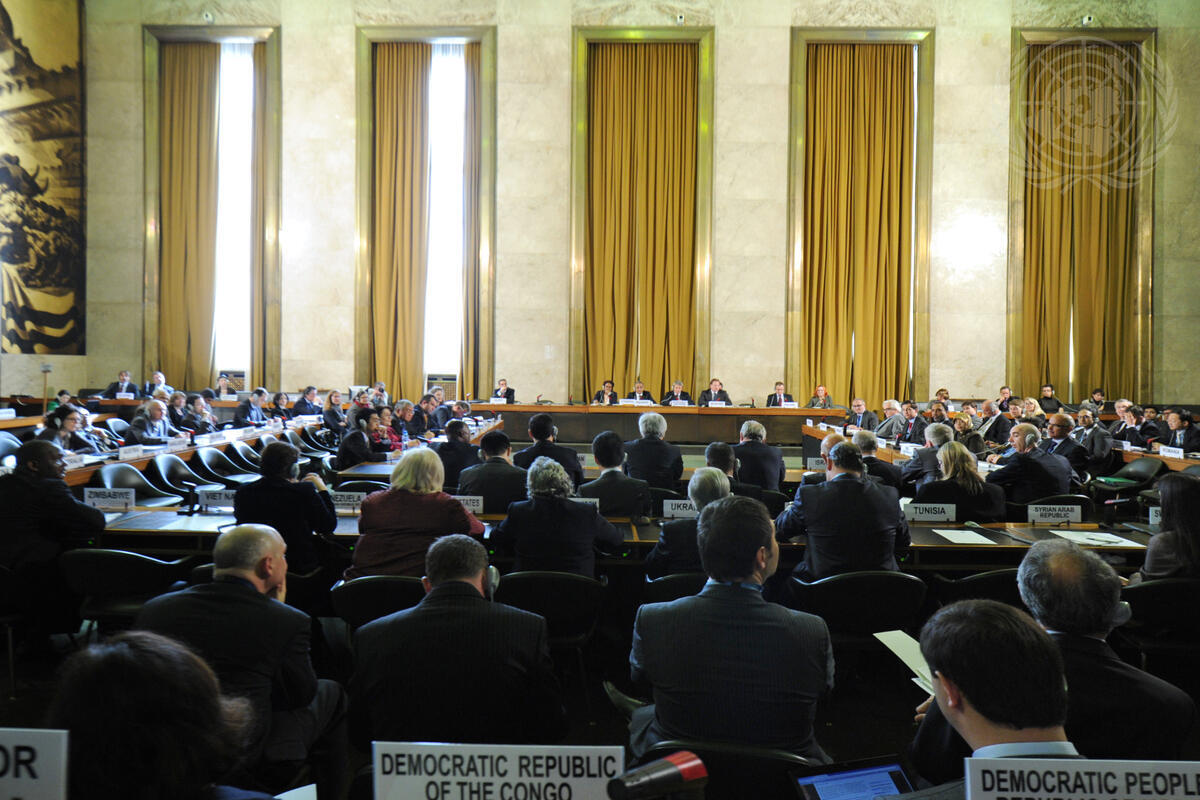 A wide view of the Conference on Disarmament during its plenary meeting, in Geneva, Switzerland.
