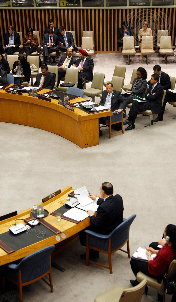 Caption Description Hamid Al Bayati (below, at table), Permanent Representative of Iraq to the UN, addresses the Security Council on the situation in his country. Also pictured is Martin Kobler (at table, right), the Secretary-General’s Special Representative for Iraq.