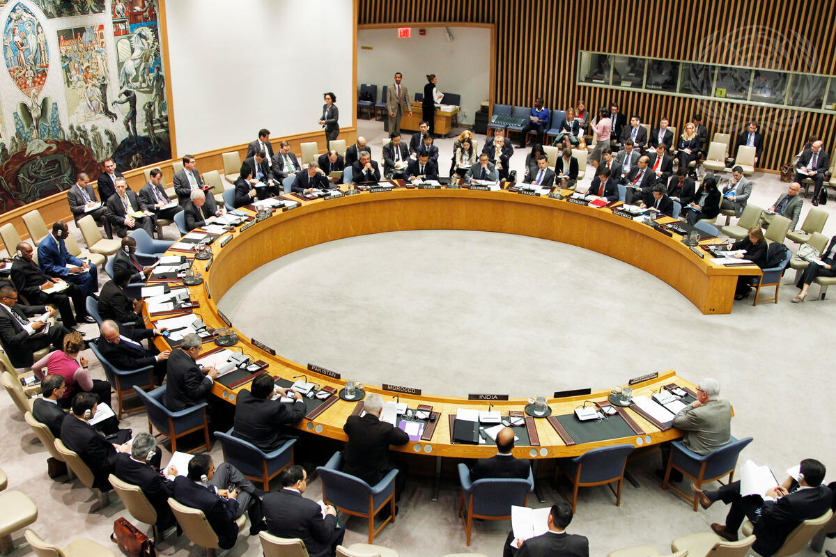A wide view of the Security Council as it deliberates on UN peacekeeping operations.
