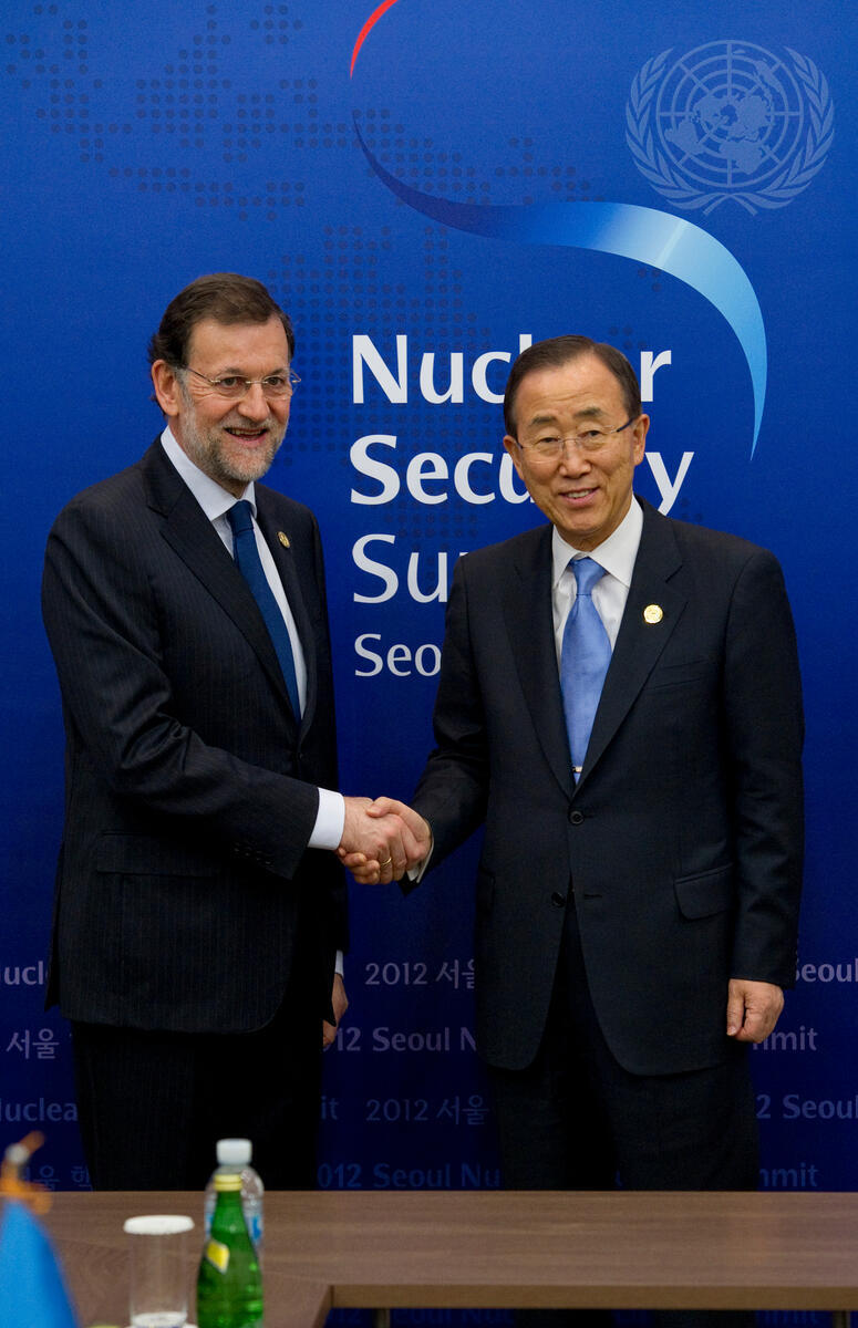 Secretary-General Ban Ki-moon (right) meets with Mariano Rajoy Brey, Prime Minister of Spain, at the 2012 Nuclear Security Summit in Seoul, Republic of Korea.