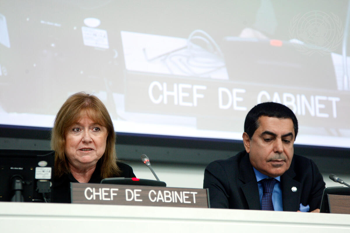 Susana Malcorra, Secretary-General Ban Ki-moon’s Chef de Cabinet, speaks during the General Assembly debate on disaster prevention and response. Beside her is Nassir Abdulaziz Al-Nasser, President of the sixty-sixth session of the Assembly.