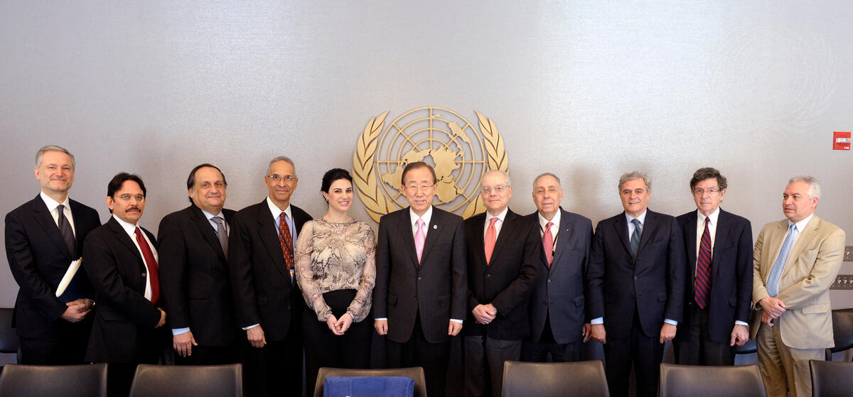 Secretary-General Ban Ki-moon (centre) meets with representatives of Member States and Observer States of the Central American Integration System (SICA).