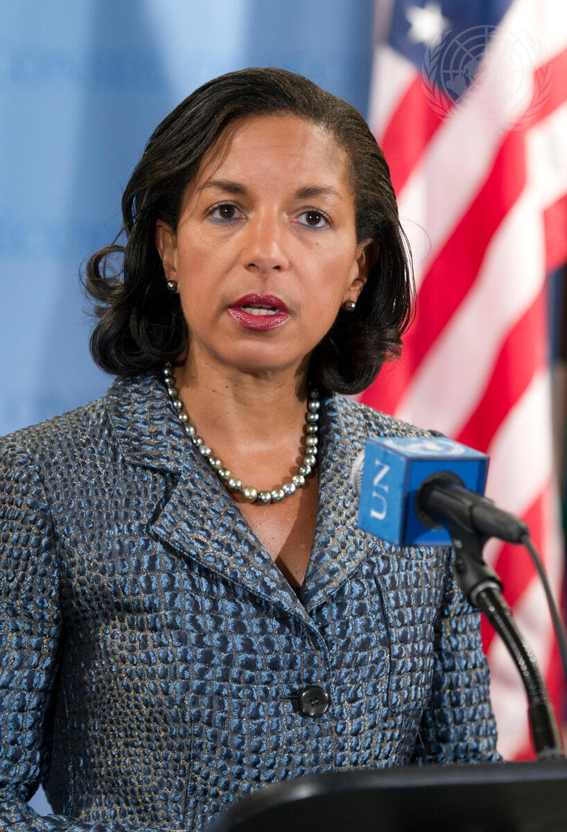 Susan E. Rice, Permanent Representative of the United States to the UN and President of the Security Council for April, issues statements to the press on behalf of the Council, deploring the rocket launch yesterday by the Democratic People’s Republic of Korea (DPRK) - an act in violation of the Council’s resolutions 1718 and 1874 - and demanding the restoration of Government in Guinea-Bissau after reports this morning that the country’s prime minister and acting president have been arrested by the military.