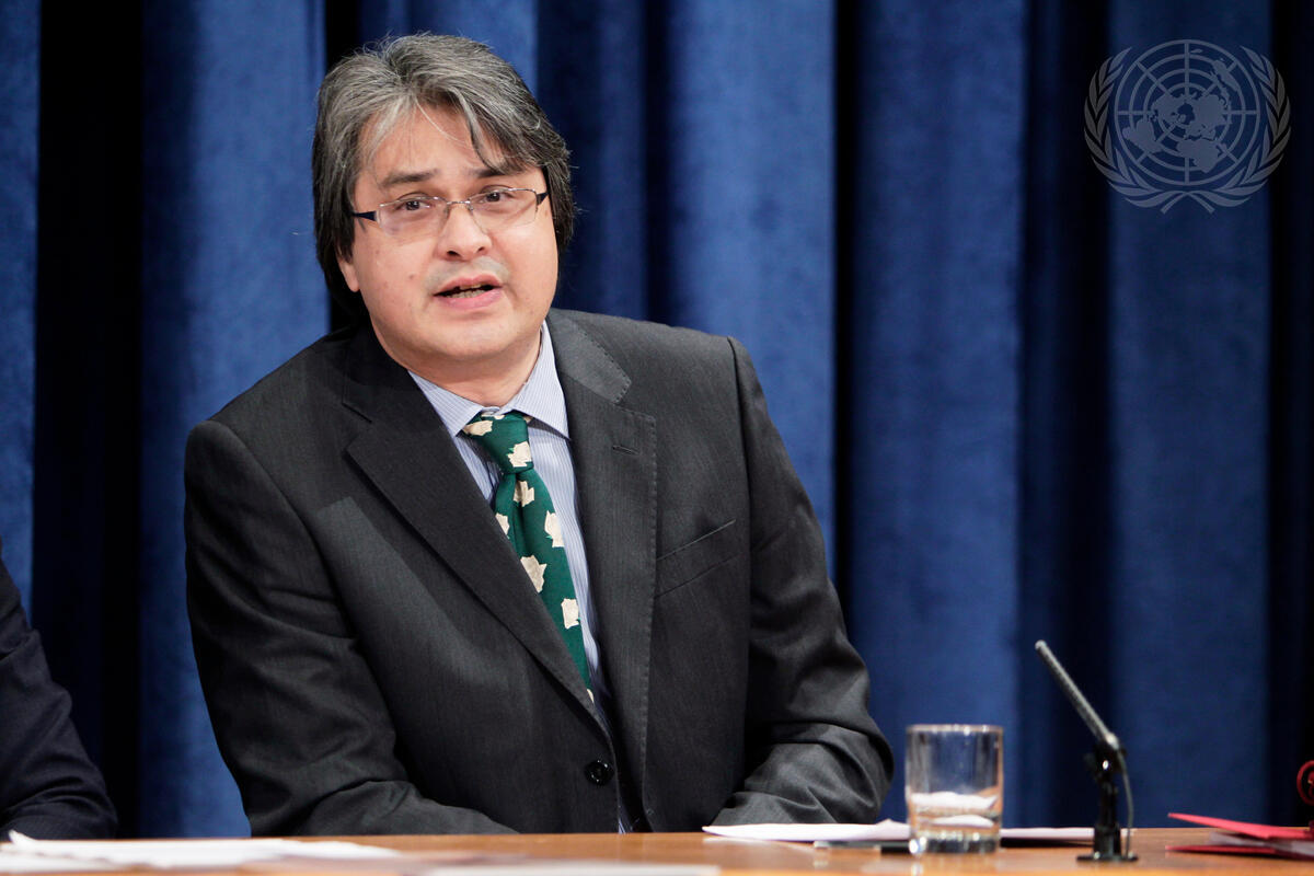 Christian Salazar, Deputy Director of the Programme Division of the UN Children’s Fund (UNICEF), addresses a press conference launching a report by the non-governmental organization Watchlist on Children and Armed Conflict entitled, “No One to Trust: Children and Armed Conflict in Colombia”.
