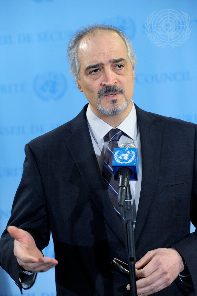 Bashar Ja'afari, Permanent Representative of the Syrian Arab Republic to the UN, speaks to reporters following Security Council consultations on the Middle East and Syria.