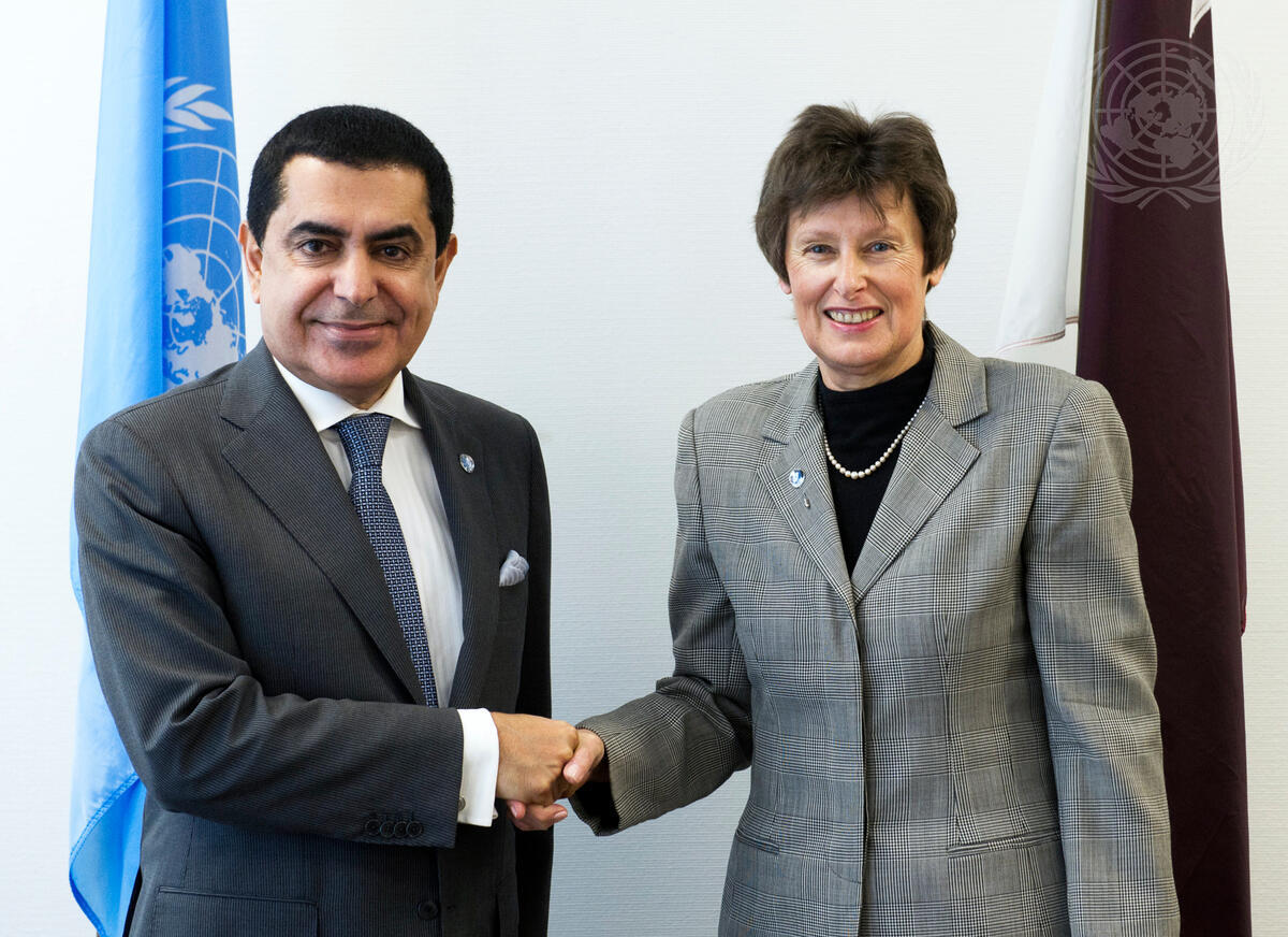 Nassir Abdulaziz Al-Nasser (left), President of the sixty-sixth session of the General Assembly, meets with Angela Kane, newly-appointed UN High Representative for Disarmament Affairs.