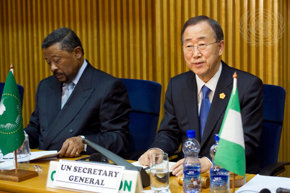 Secretary-General Ban Ki-moon (right) attends a high-level meeting on Côte D’Ivoire on the margins of the African Union Summit this week in Addis Abba. On the left is Jean Ping, Chairperson of the Commission of the African Union.