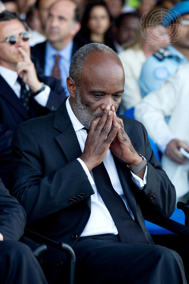 René Garcia Préval, President of Haiti, attends a memorial service for the 102 UN staff members who perished in Haiti’s earthquake on 12 January, exactly one year ago, in Haitian capital, Port-au-Prince.
