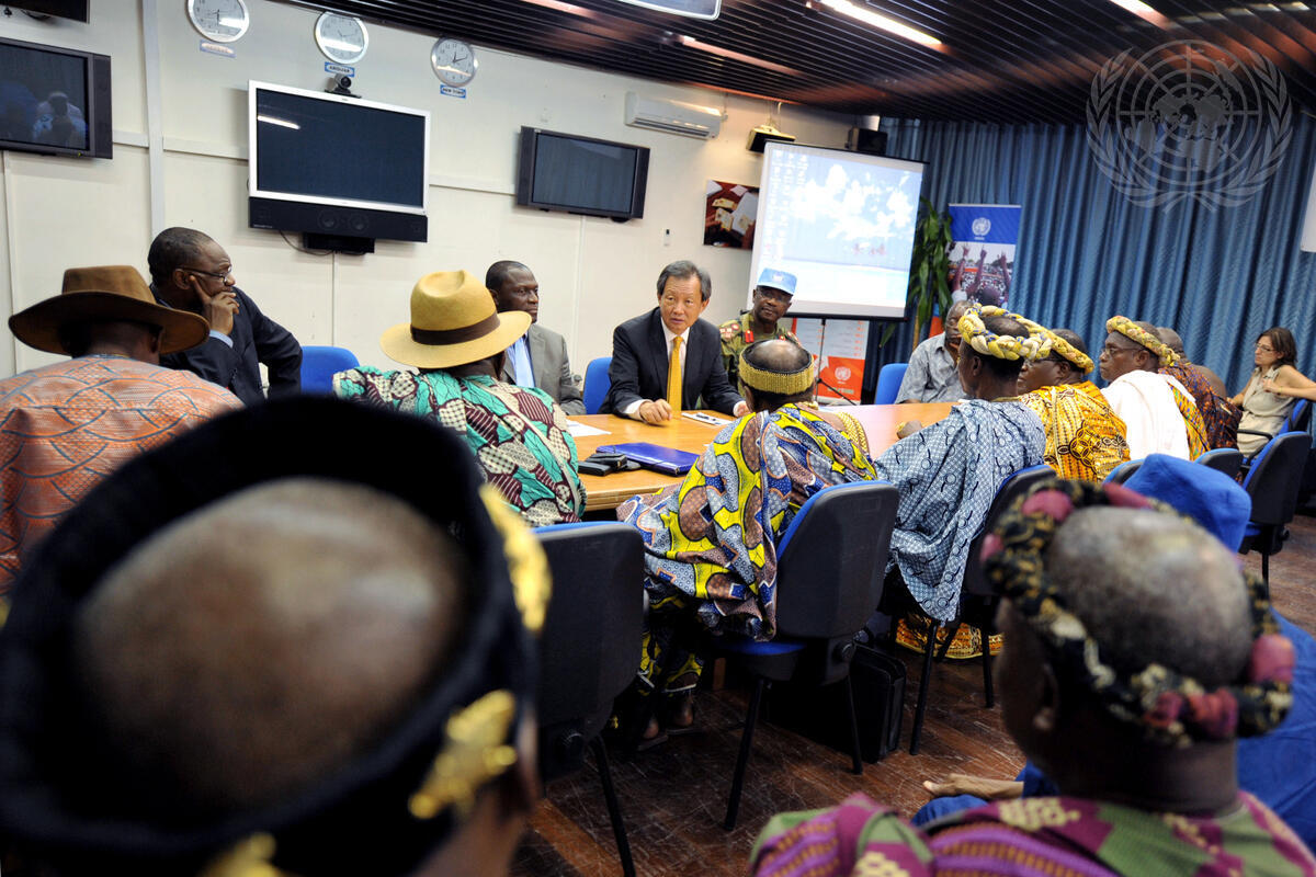 Choi Young-Jin (facing camera, yellow tie), Special Representative of the Secretary-General for Côte d'Ivoire, meets with a delegation of Ivorian traditional leaders to explain the method for certifying the results of November 2010’s contested presidential elections.