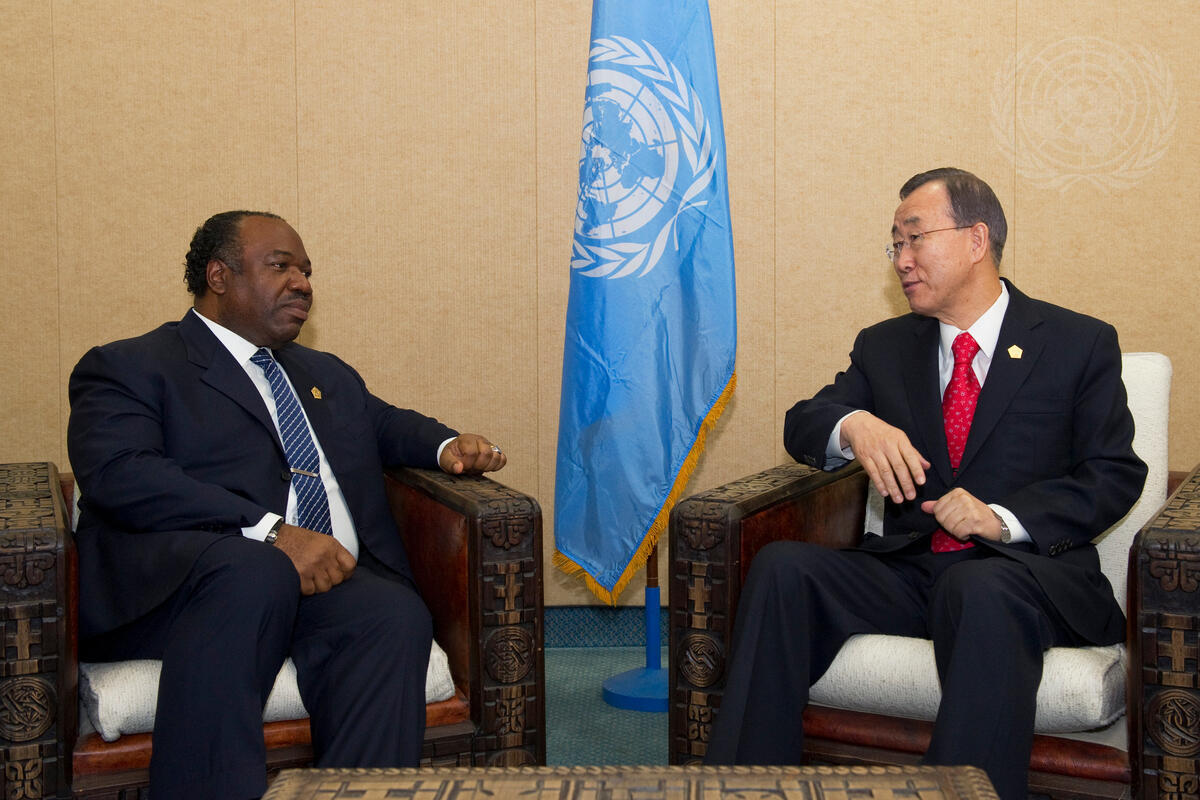 Secretary-General Ban Ki-moon (right) meets with Ali Bongo Ondimba, President of the Republic of Gabon.