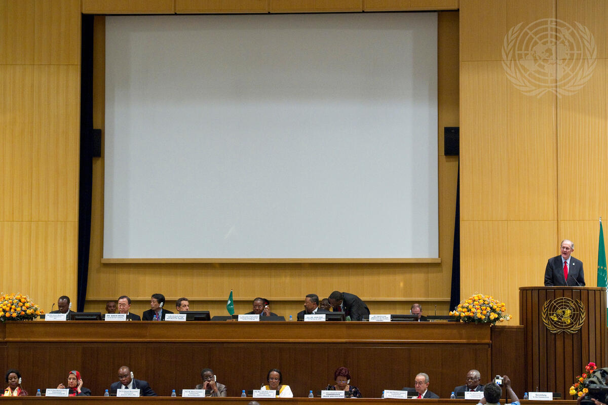 Joseph Deiss of Switzerland, President of the 65th session of the United Nations General Assembly, speaks at the Opening Ceremony of the 16th Ordinary Session of the Assembly of the African Union.