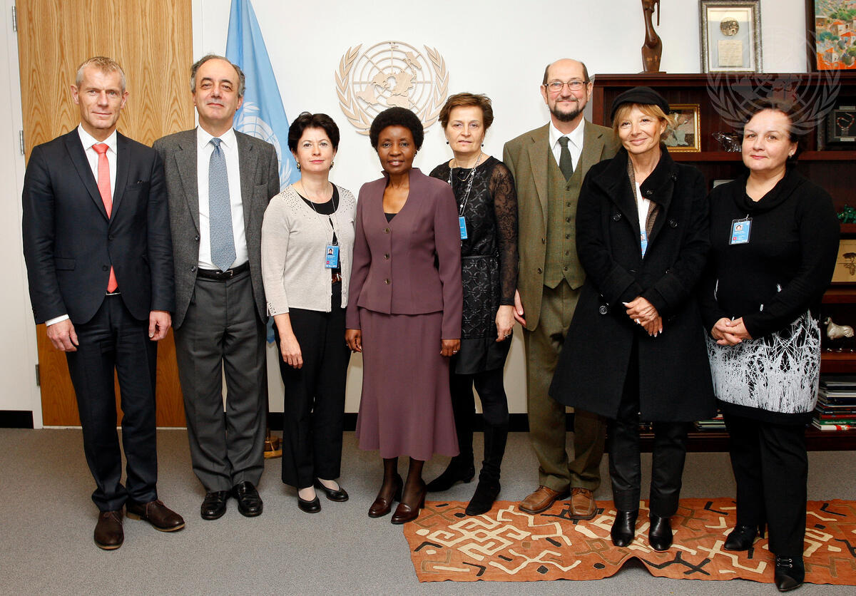 Deputy Secretary-General Asha-Rose Migiro (fourth from left) meets with members of a joint delegation of the European Parliament’s Committee on Foreign Affairs and Subcommittee on Human Rights. From left: Helmut Scholz; Francisco José Millán Mon; Barbara Lochbihler; Anneli Jäätteenmäki; Boris Zala; Véronique De Keyser; and Laima Liucija Andrikiene.