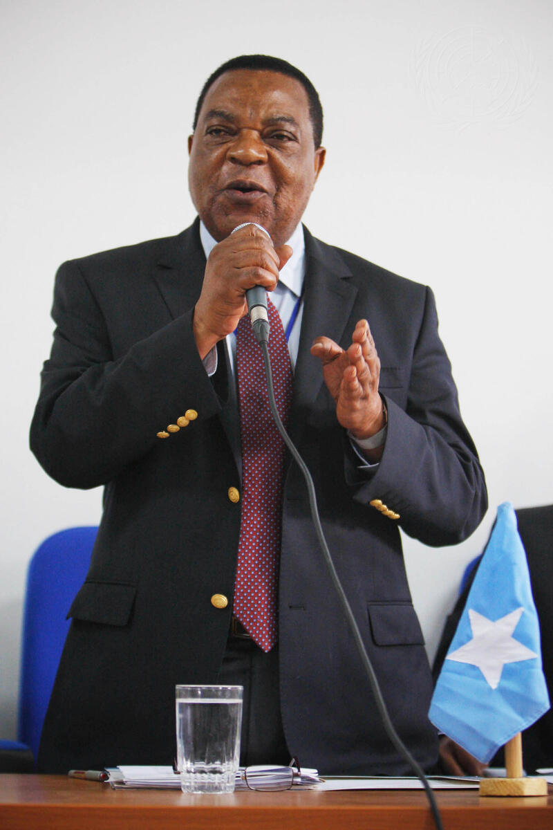 Augustine Mahiga, Special Representative of the Secretary-General and Head of the UN Political Office for Somalia, addresses delegates on the first day of UNPOS’ civil society conference in Somali capital Mogadishu.