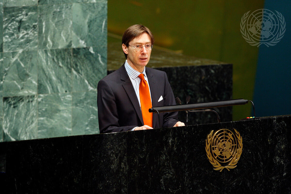 Peter Wittig, Permanent Representative of Germany to the UN, presents a draft resolution pledging the General Assembly’s continued support for a “stable, secure, economically self-sufficient” Afghanistan, at the Assembly’s annual meeting on the country. The resolution was adopted by consensus.
