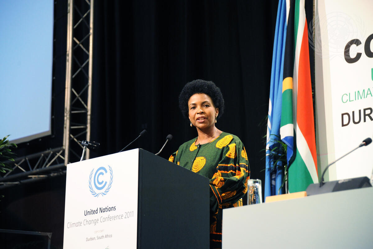 Maite Nkoana-Mashabane, Minister for International Relations and Cooperation of South Africa, speaks on the opening day of the UN Climate Change Conference in Durban (also referred to as COP17/CMP7). As host country foreign minister, Ms. Nkoana-Mashabane is also president of the conference.