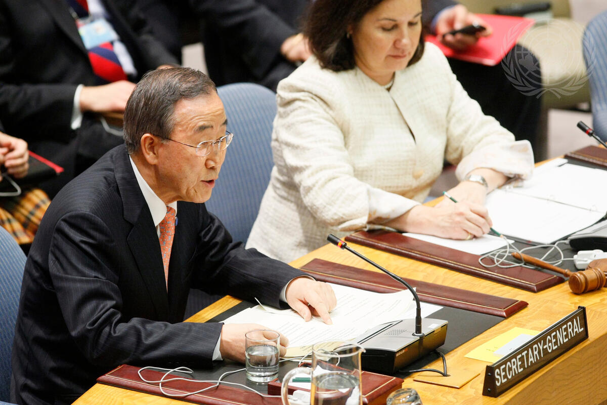 Secretary-General Ban Ki-moon addresses a Security Council meeting on the situation in Libya, where deadly government attacks against civilians are ongoing.