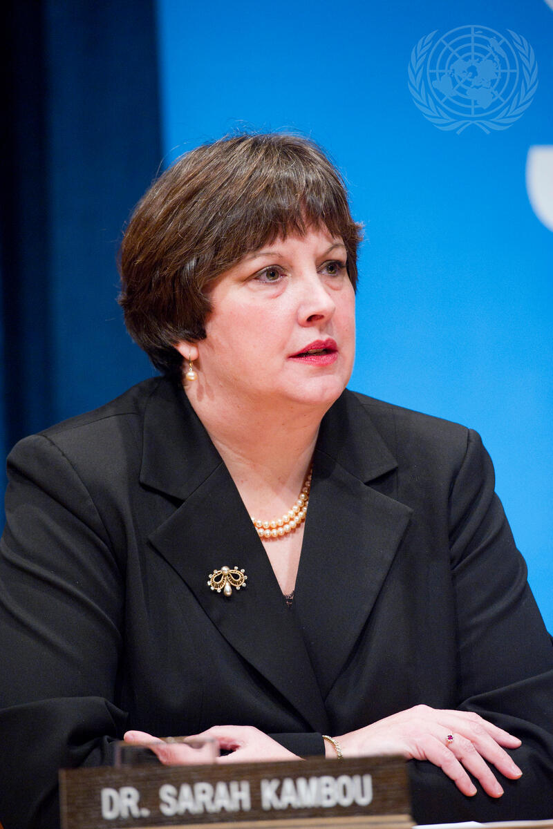 Sarah Kambou, President of the International Center for Research on Women (ICRW), addresses a press conference launching the UN Children’s Fund (UNICEF) 2011 State of the World Children’s Report, entitled “Adolescence: An Age of Opportunity”.